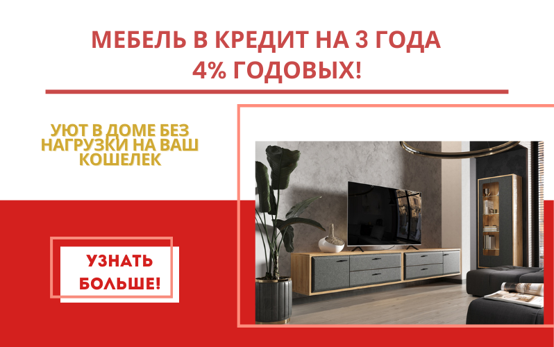 Возможно оформление без первоначального взноса и переплат, в том числе и на акционный товар. Точные условия оплаты зависят от выбранного комплекта мебели. Подробности уточняйте у менеджеров.